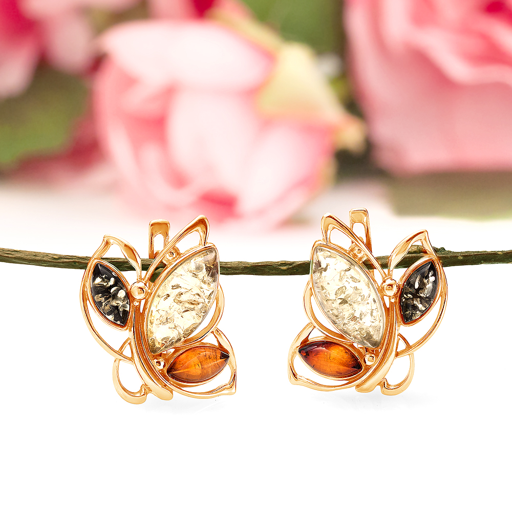 Кольцо из серебра 925 пробы с природным балтийским янтарем "микс", артикул 11920