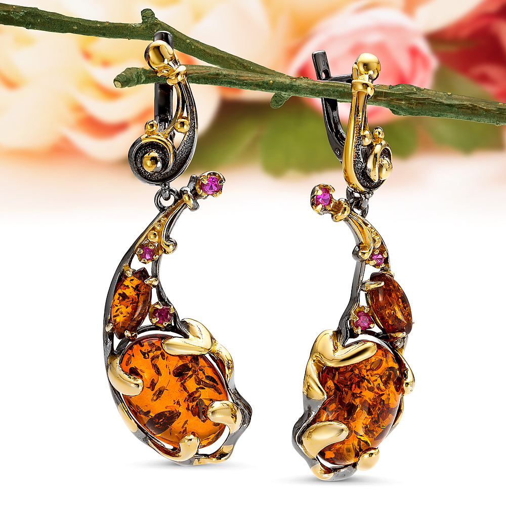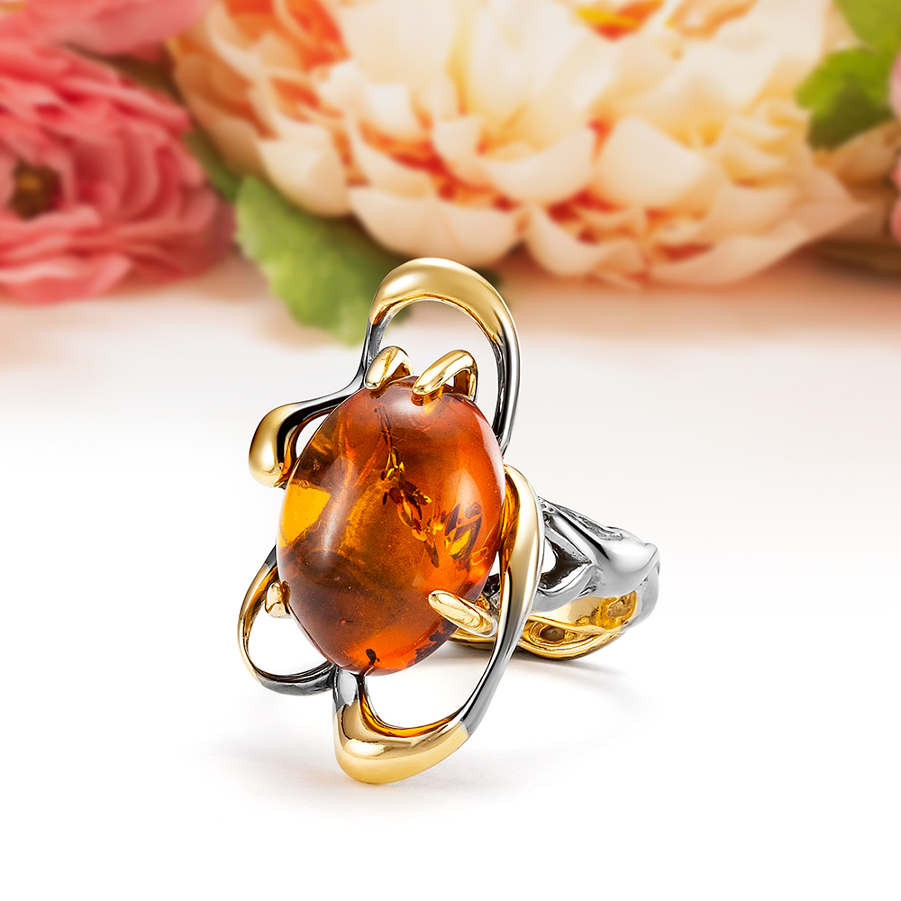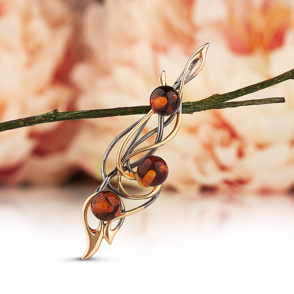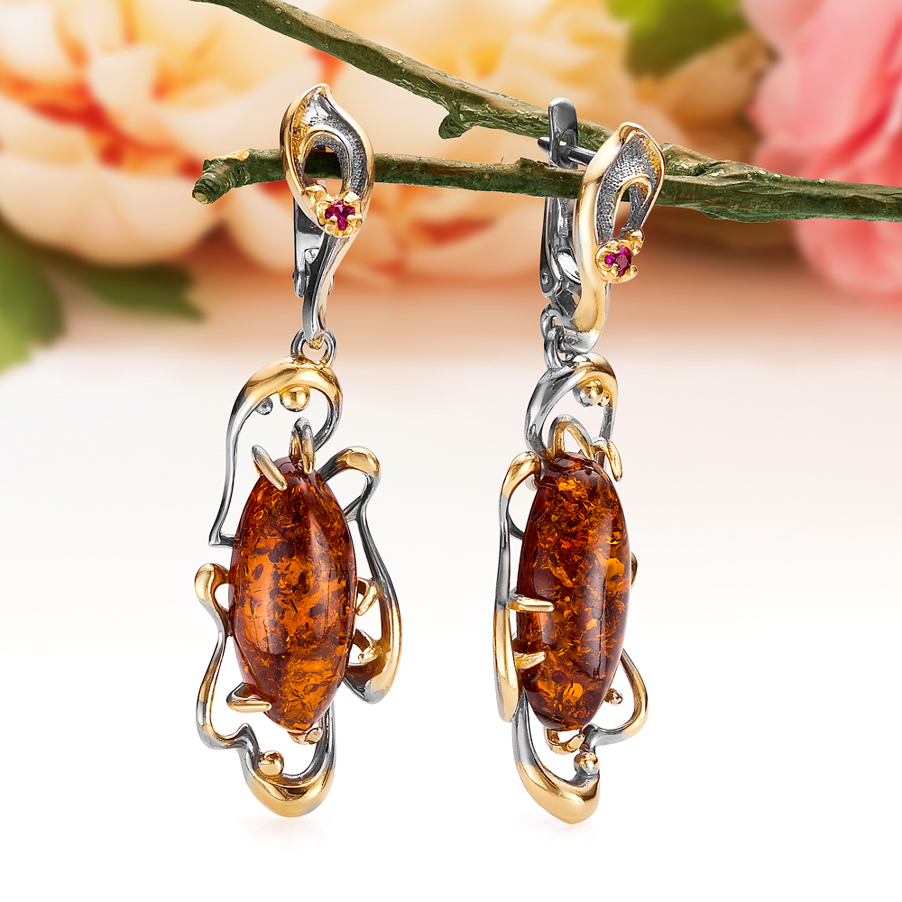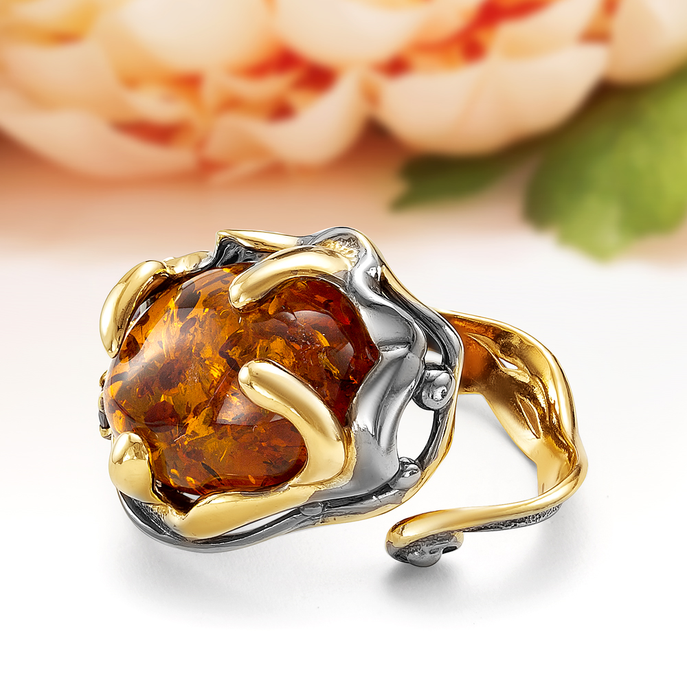 Кулон "Ажур" из серебра 925 пробы с коньячным янтарем, артикул 11462