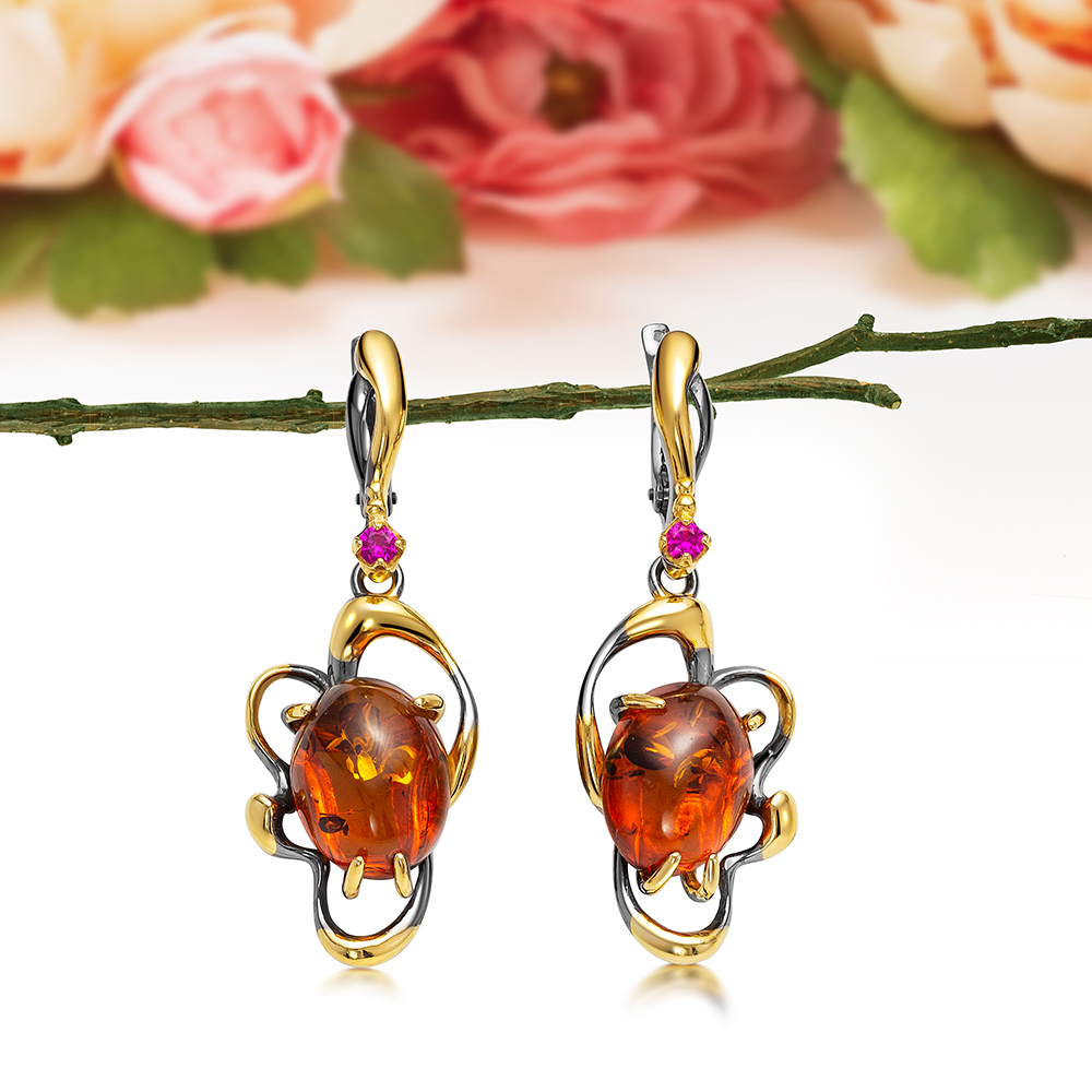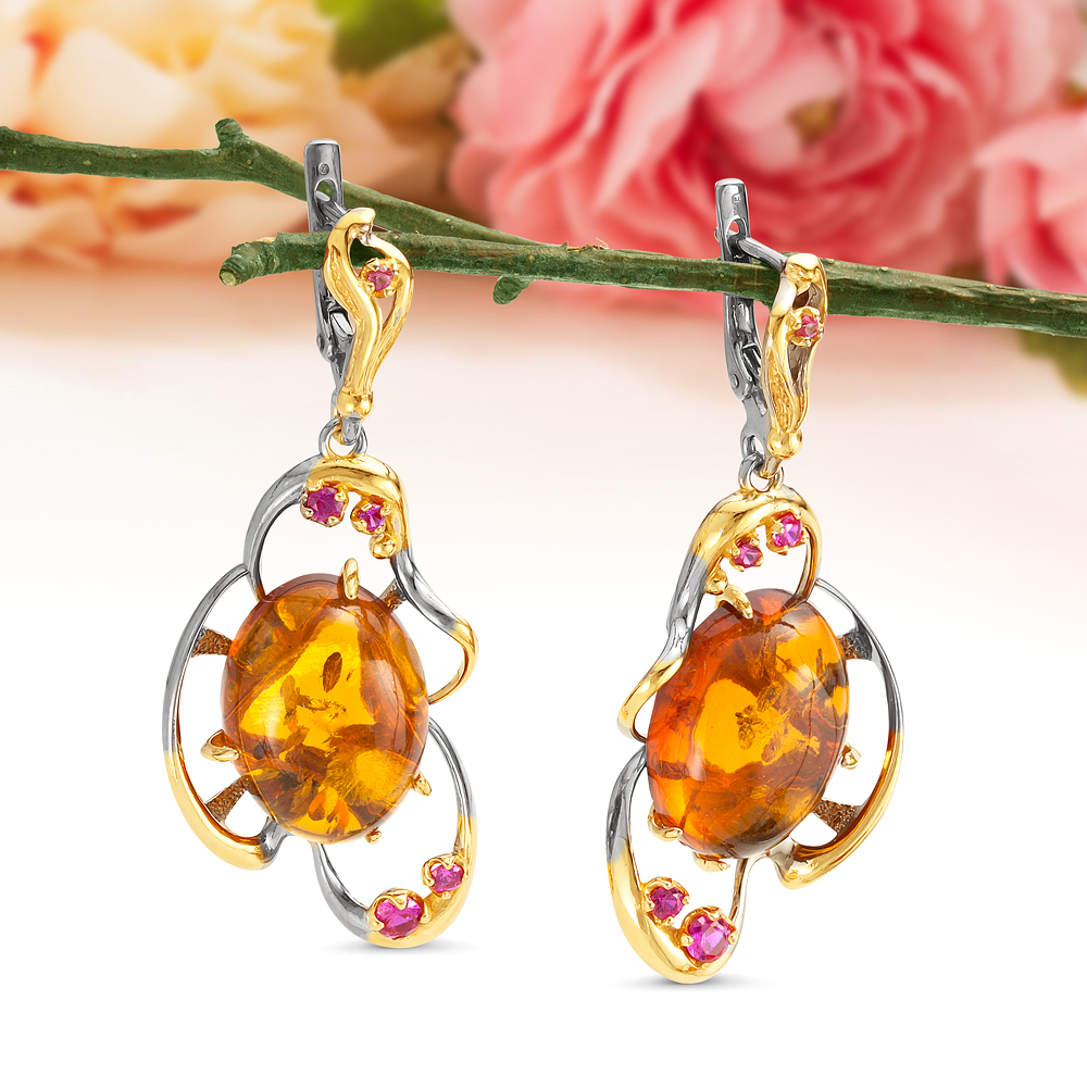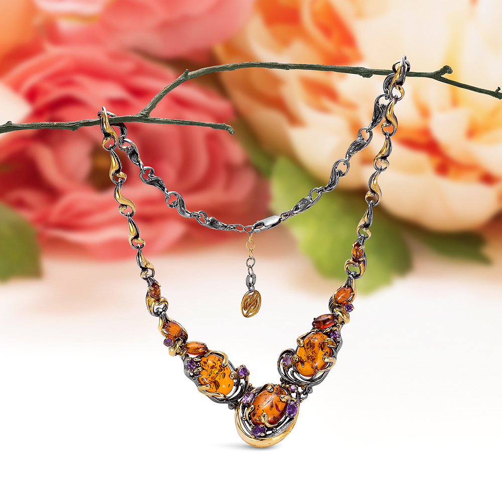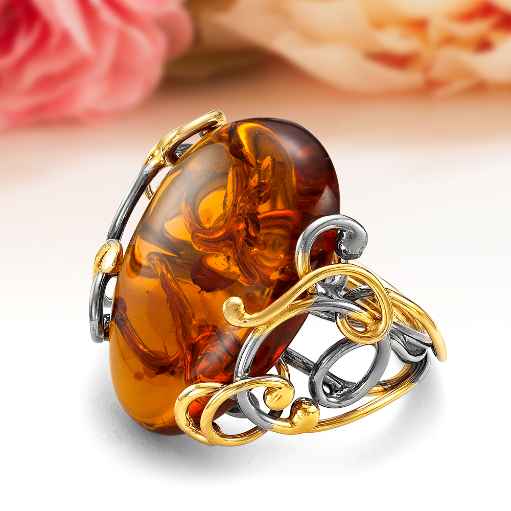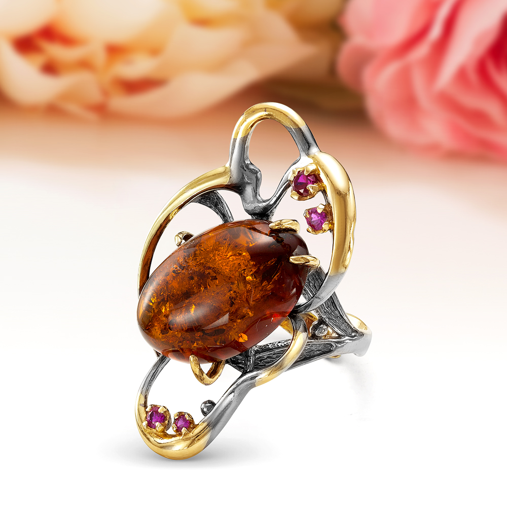 Кулон "Ажур" из серебра 925 пробы с коньячным янтарем, артикул 11462