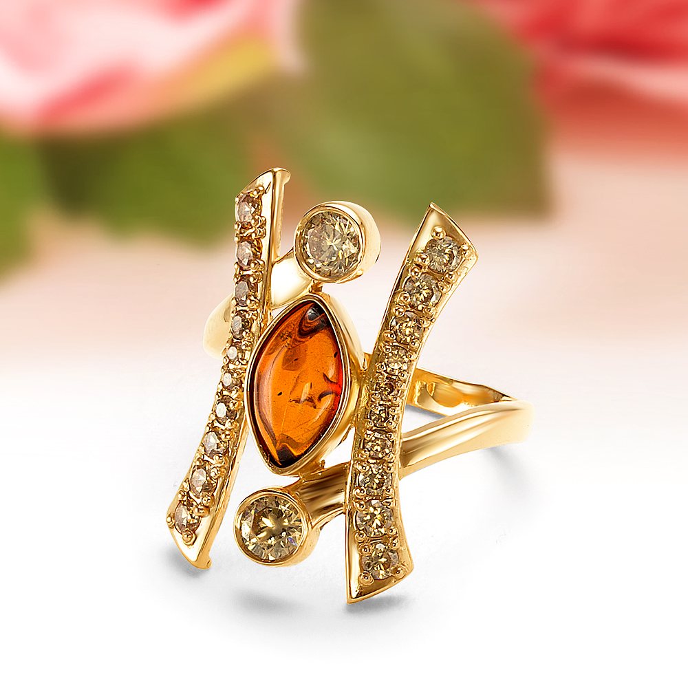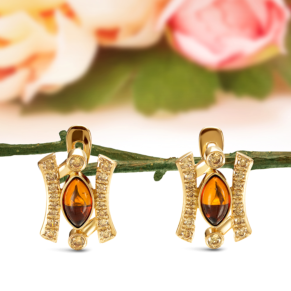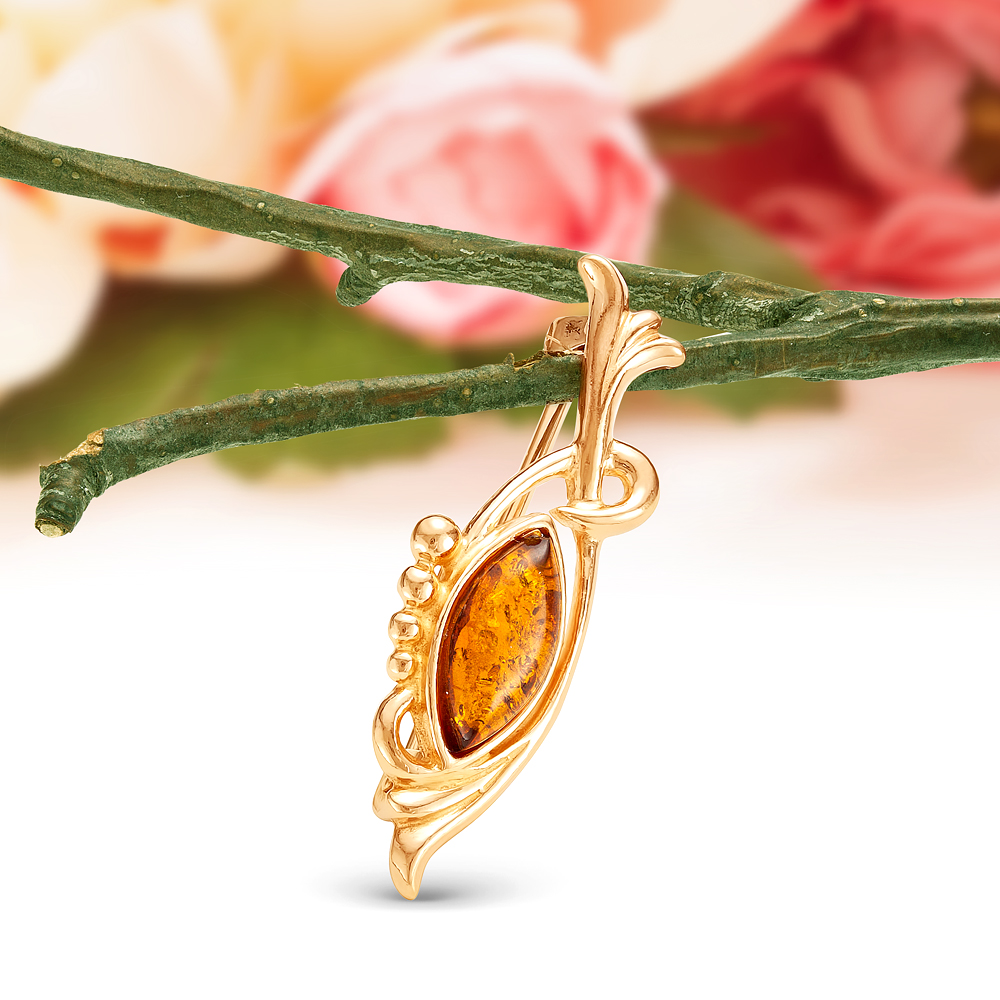 Кулон из серебра 925 пробы, украшенный коньячным янтарем, артикул 10813
