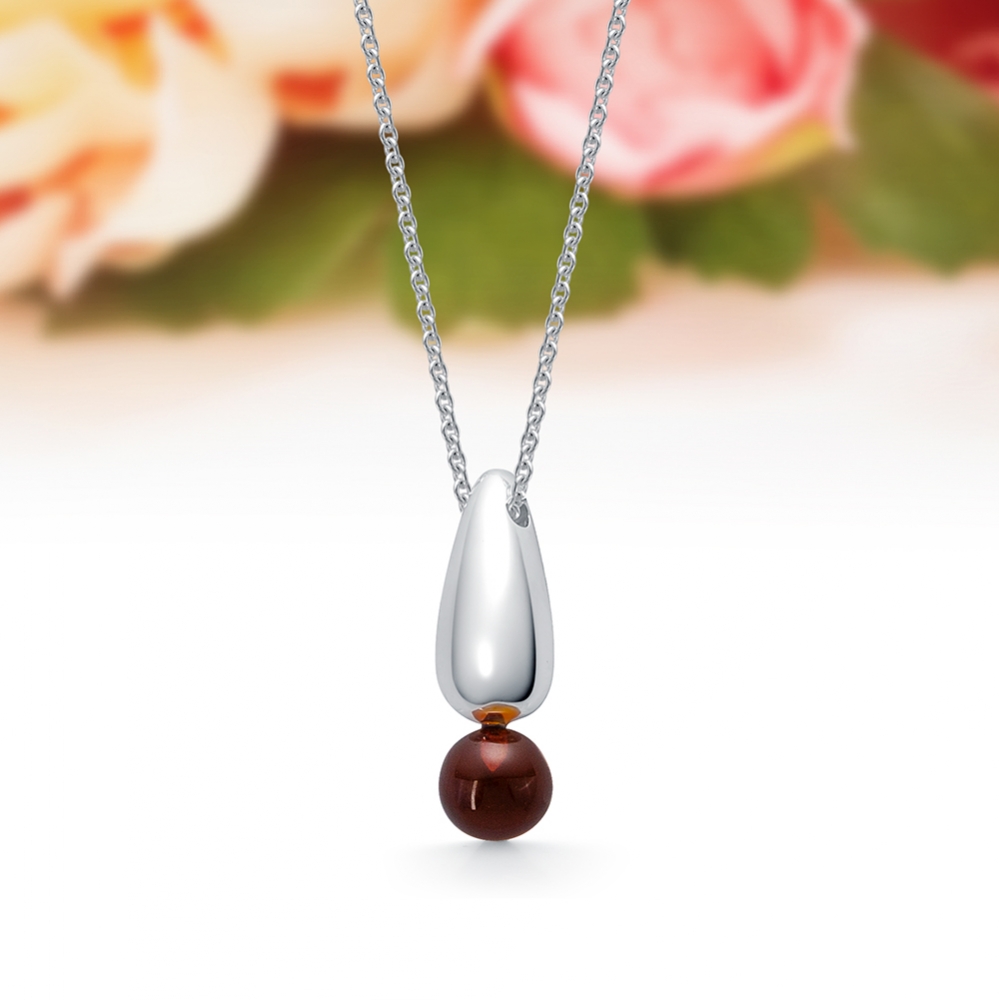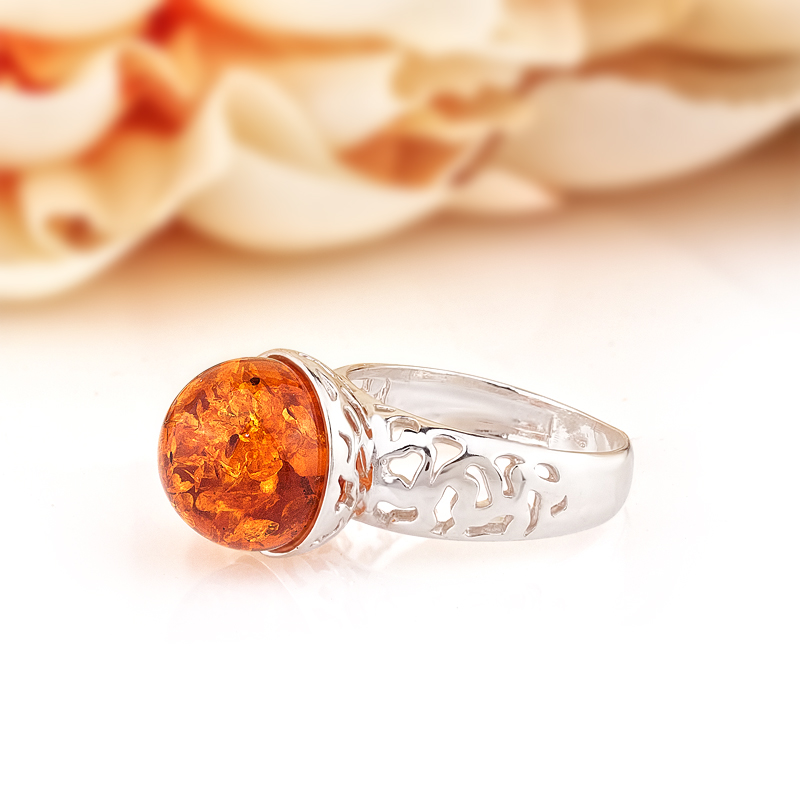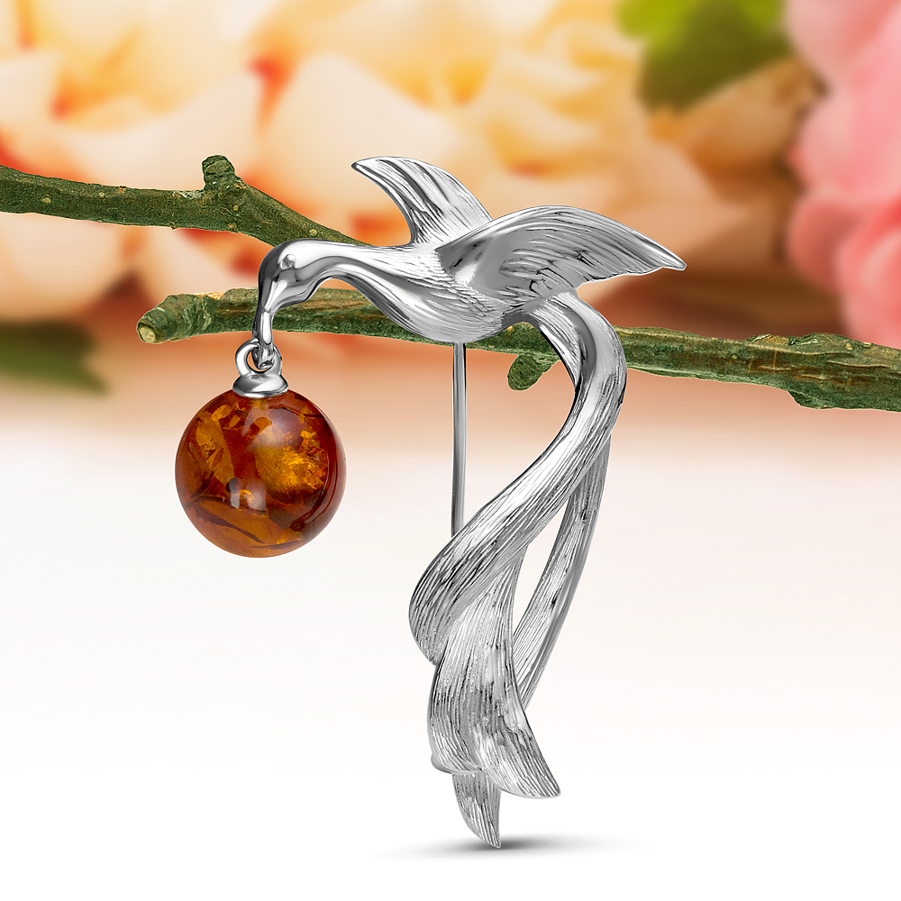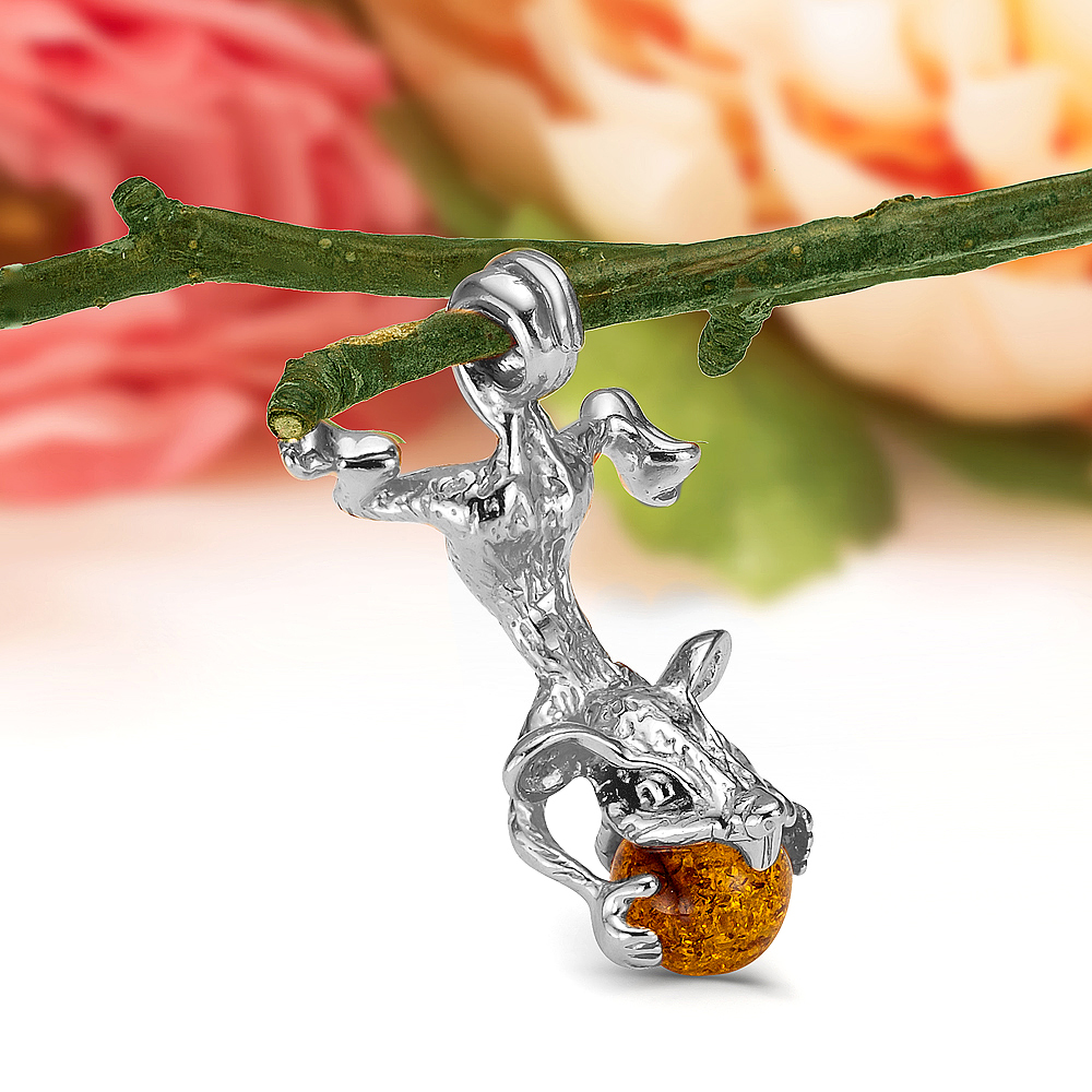 Кулон из серебра 925 пробы, украшенный коньячным янтарем, артикул 1985