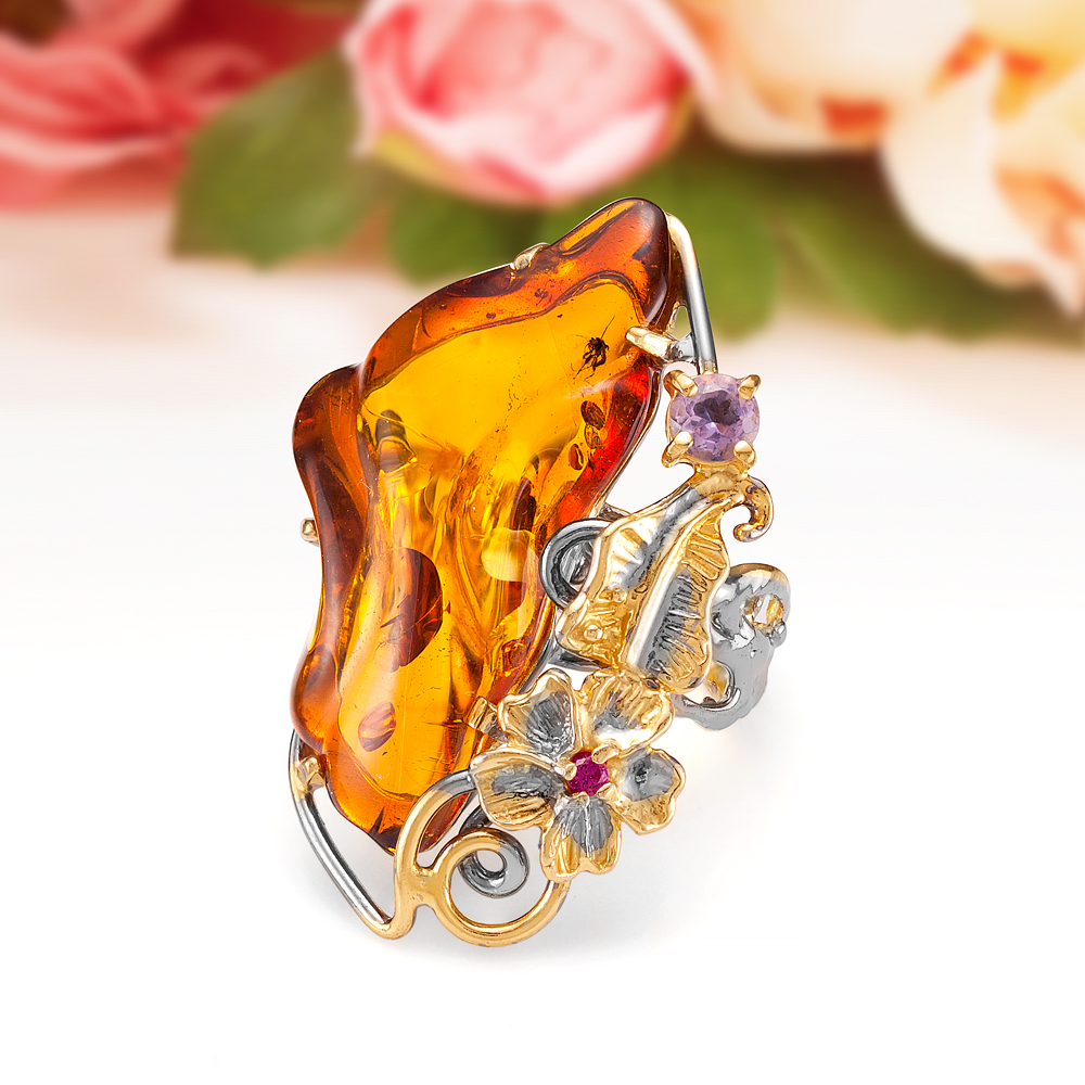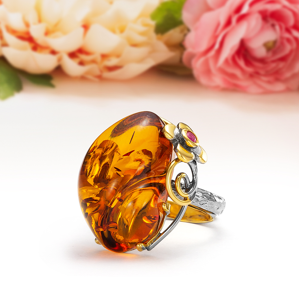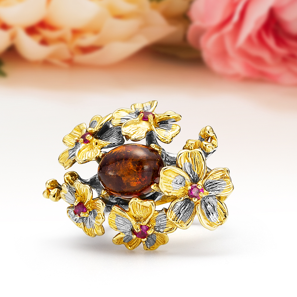 Кулон "Весенняя сказка" из серебра с коньячным янтарем, артикул 11455