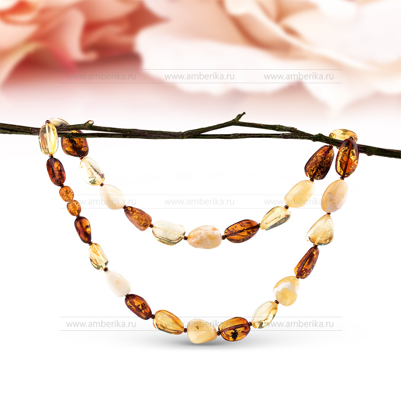 Ожерелье из балтийского природного янтаря "микс", артикул 2118