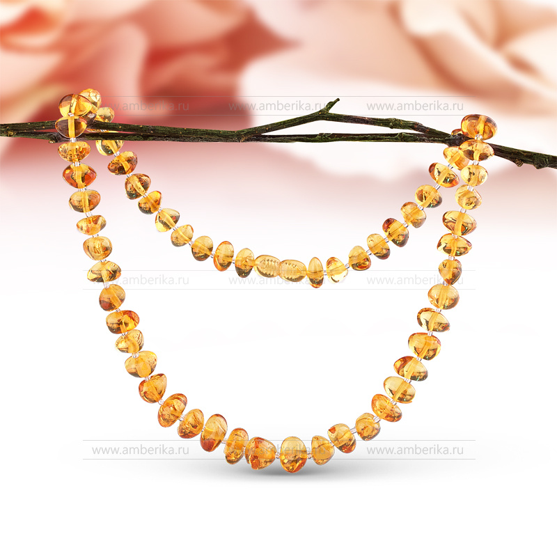 Ожерелье из золотистого балтийского природного янтаря, артикул 2147