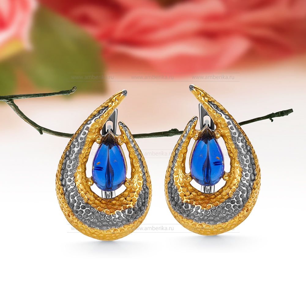 Серьги из серебра 925 пробы с синим природным балтийским янтарем, артикул 12578