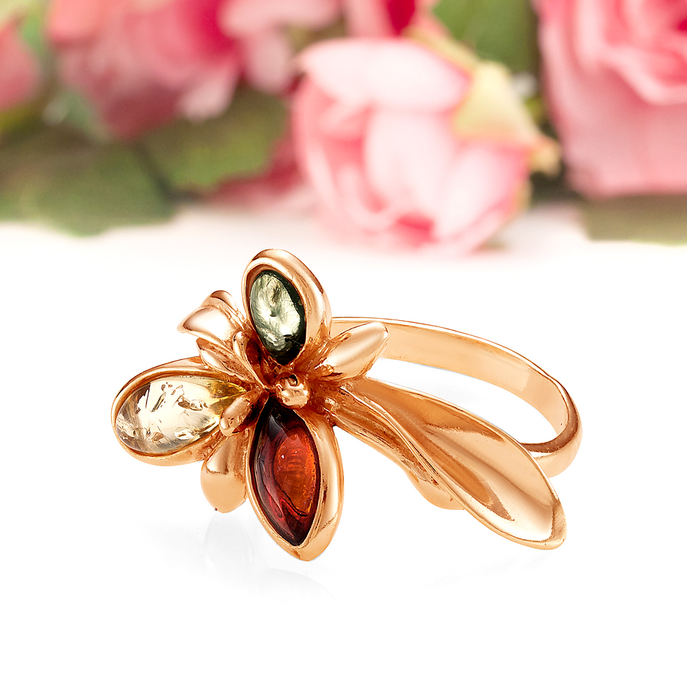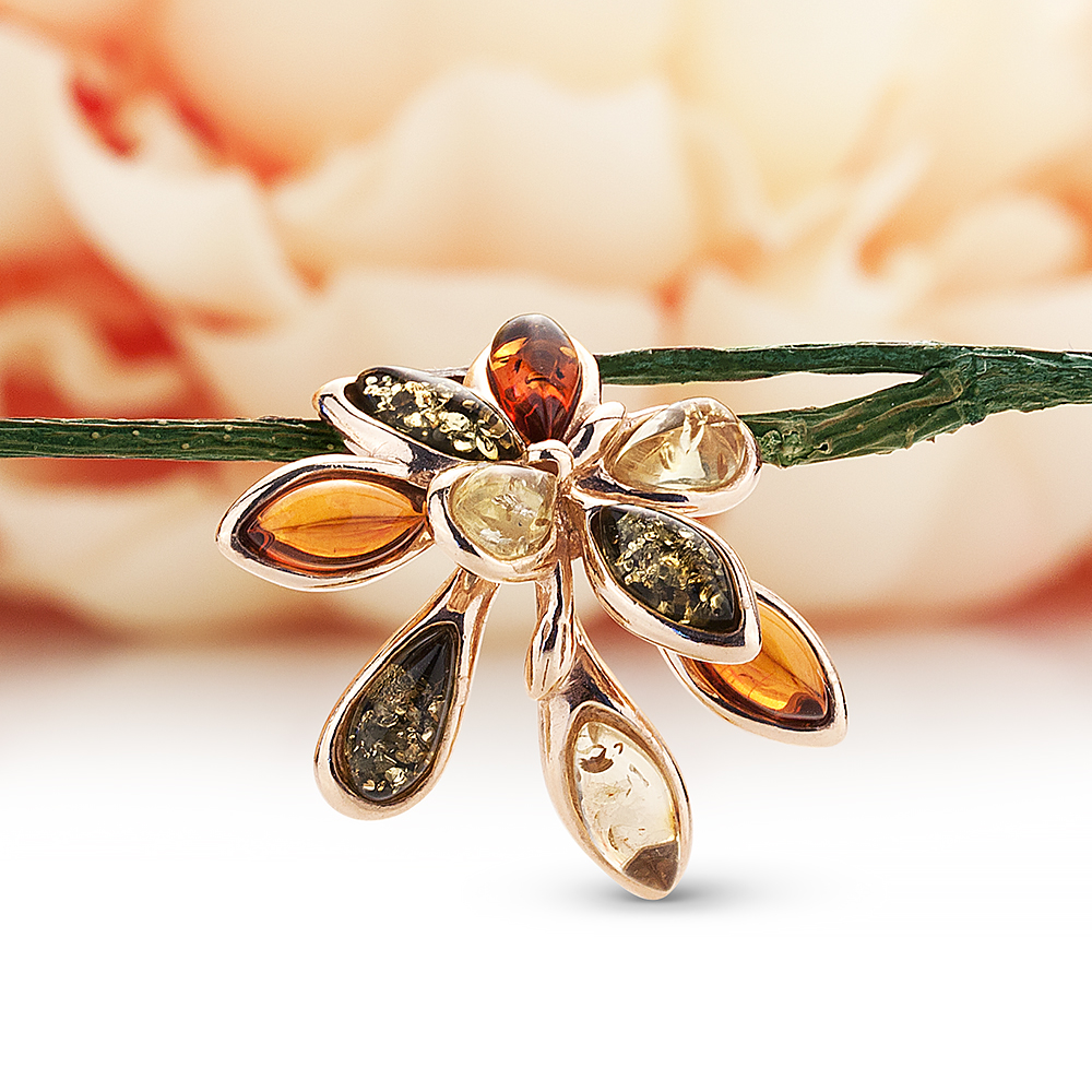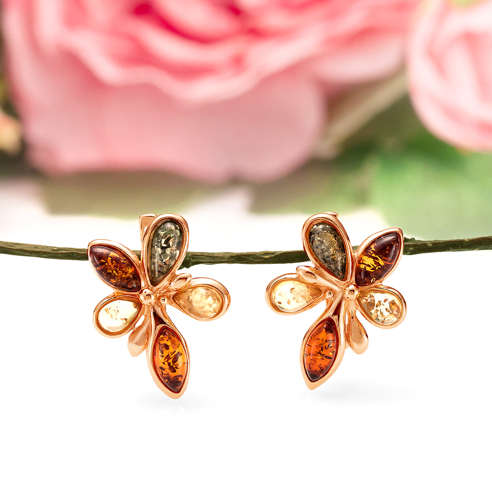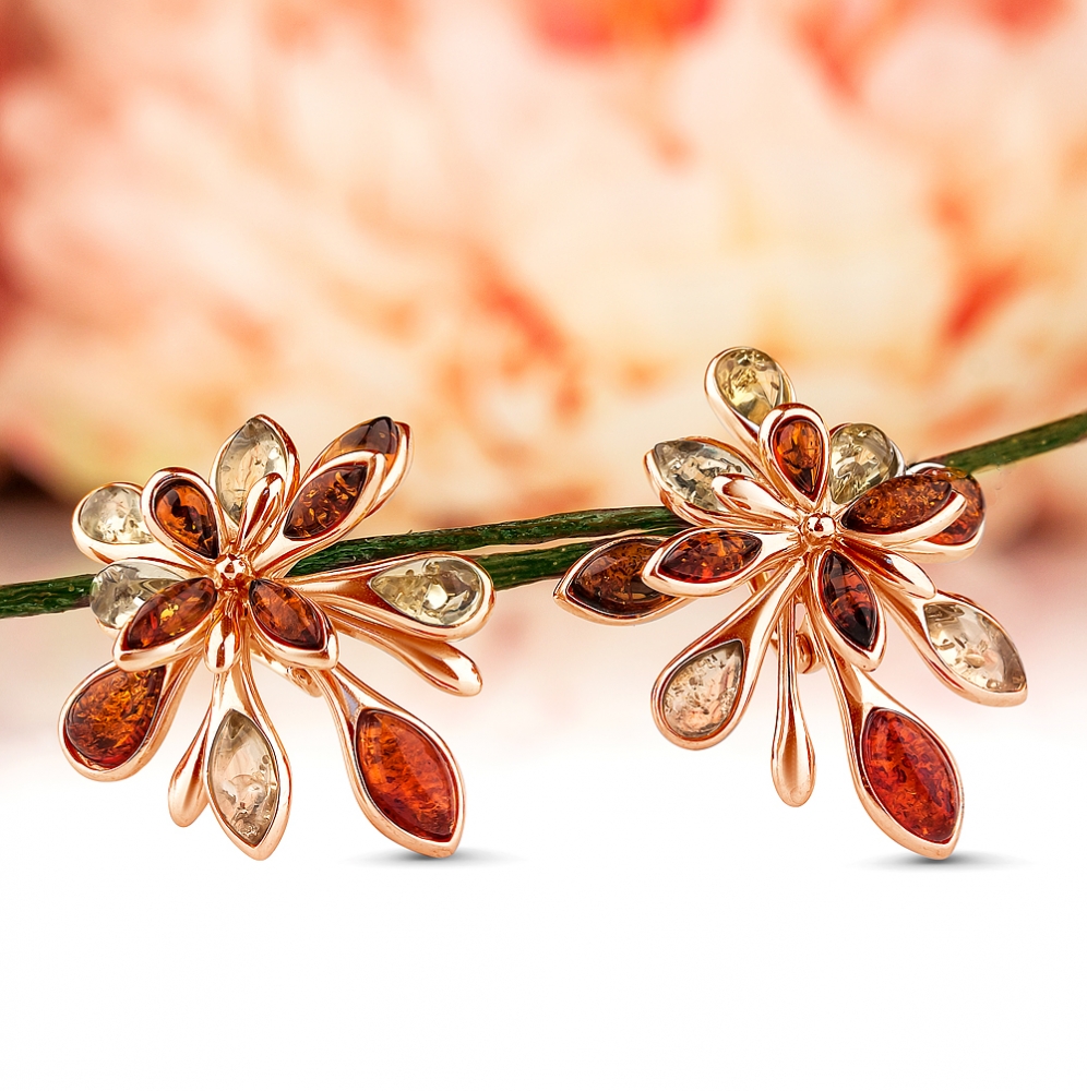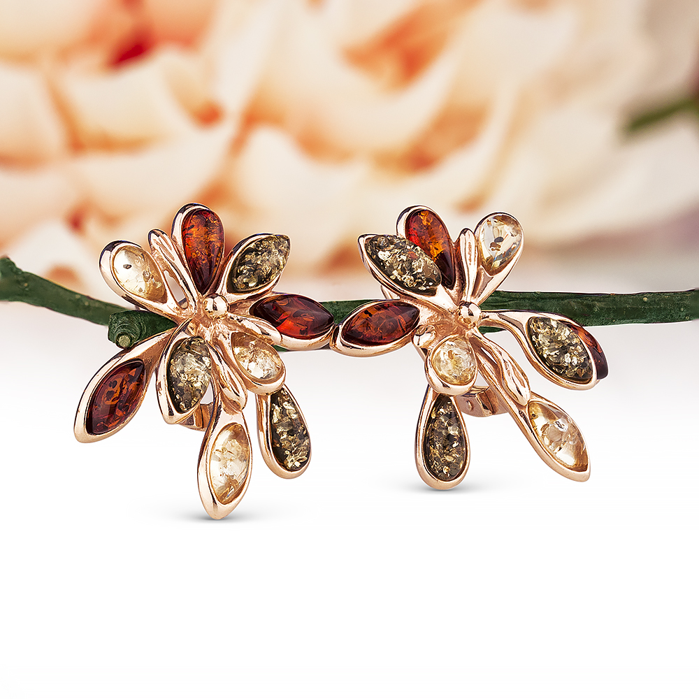 Серьги из серебра 925 пробы, украшенные природным янтарем "микс", артикул 10991