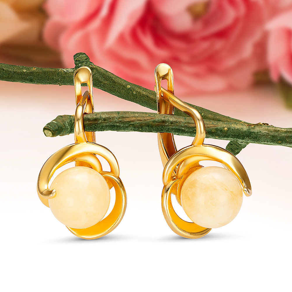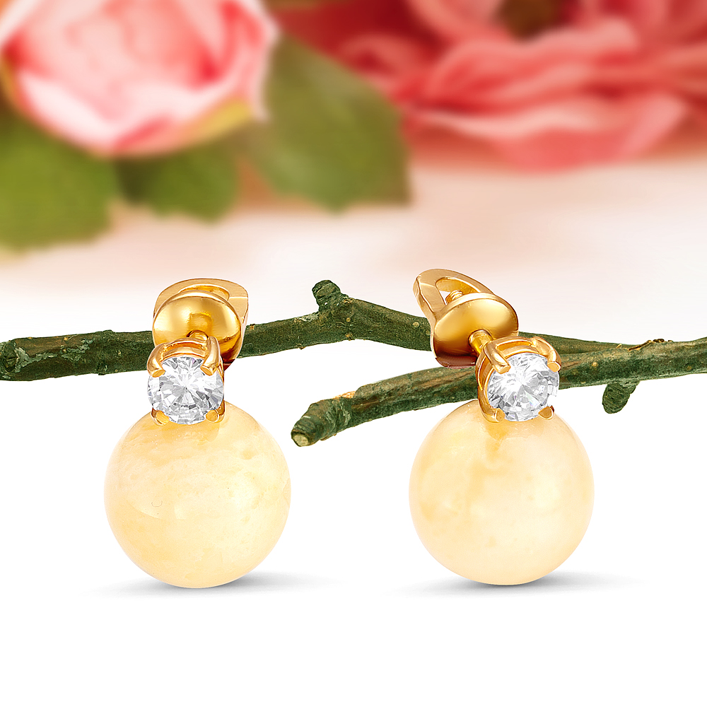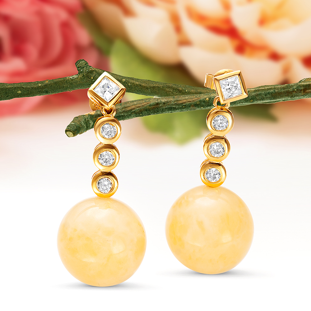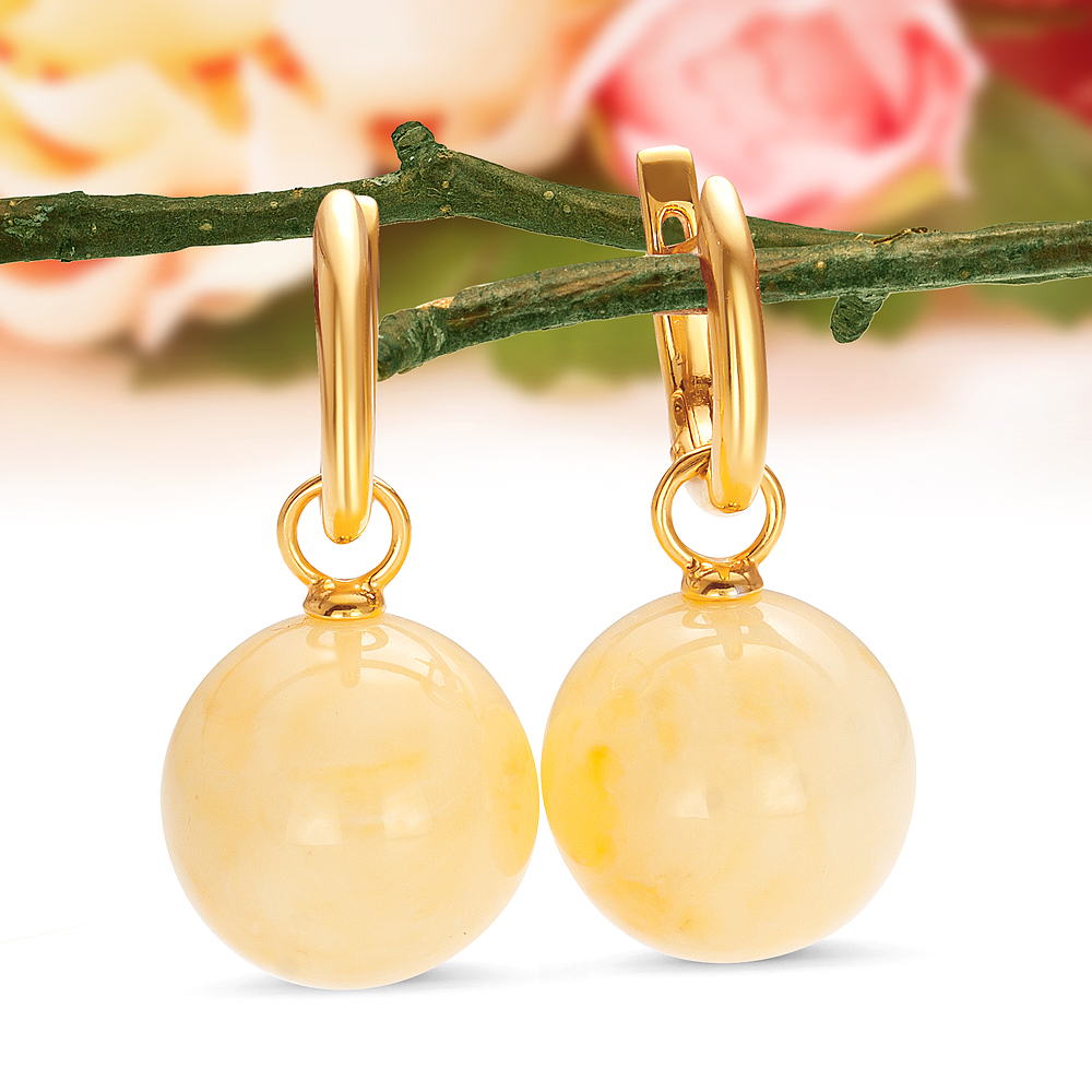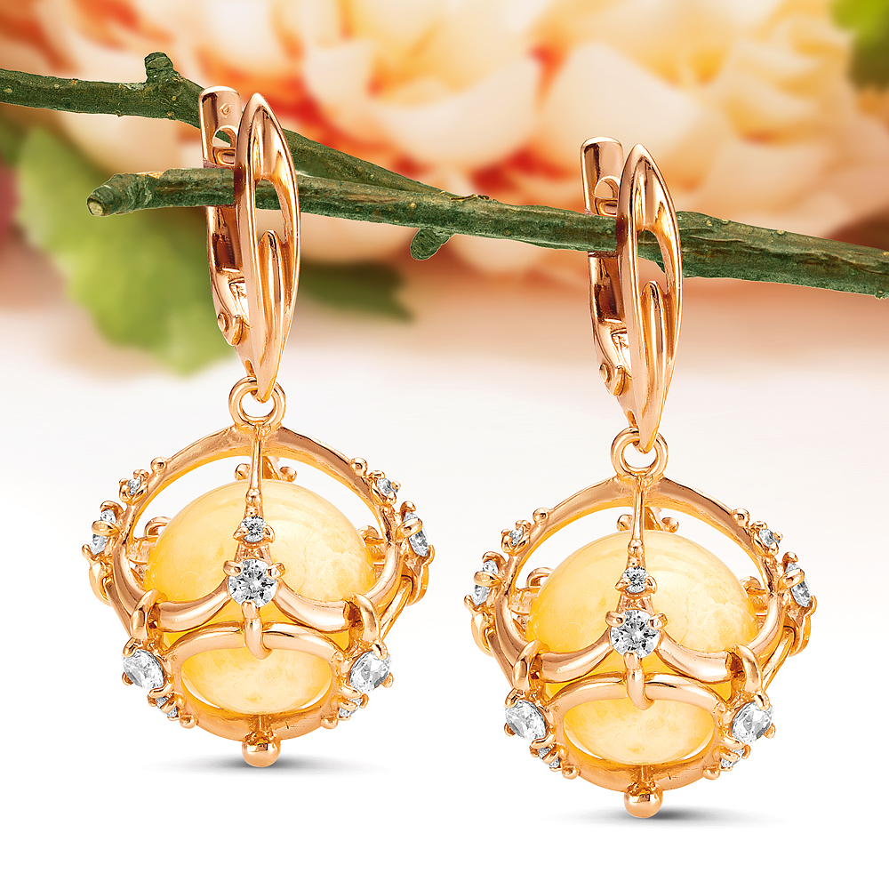 Серьги из серебра 925 пробы, украшенные лимонным природным янтарем, артикул 11397