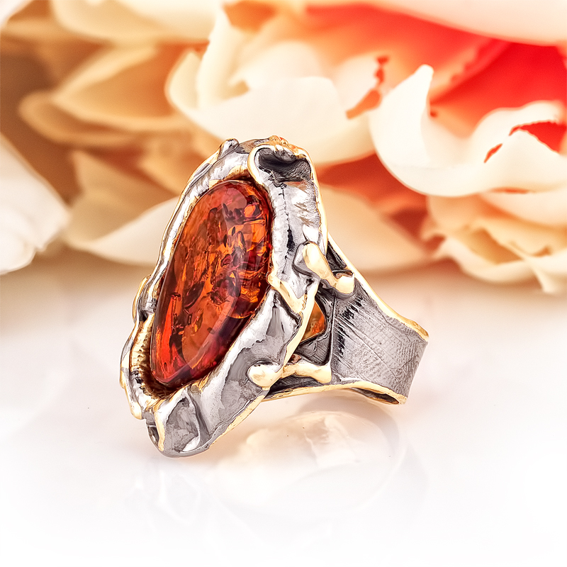 Серьги из серебра 925 пробы с коньячным балтийским янтарем, артикул 12184