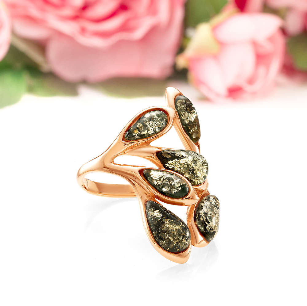 Серьги "Брызги шампанского" из серебра 925 пробы, украшенные зеленым янтарем, артикул 11806