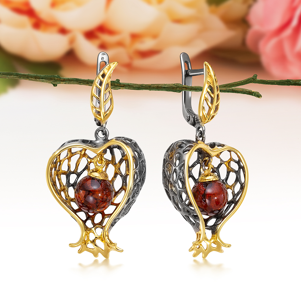 Серьги с красным янтарем