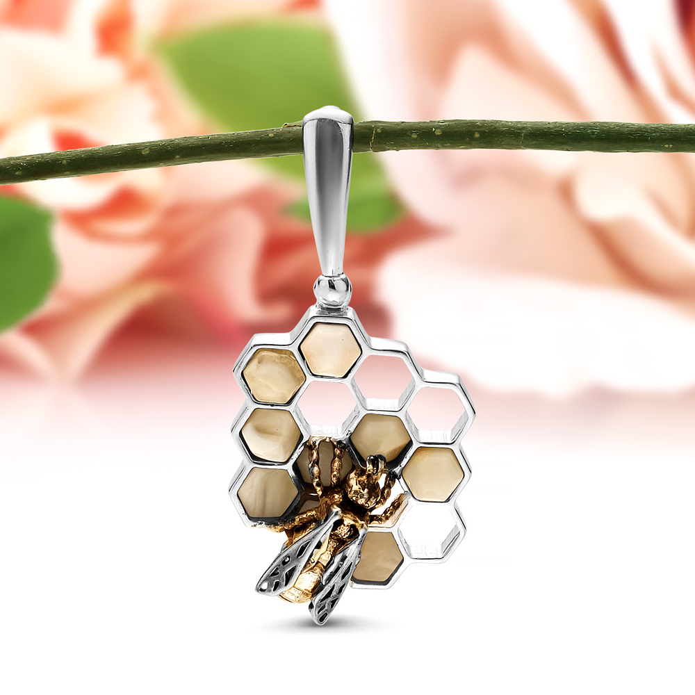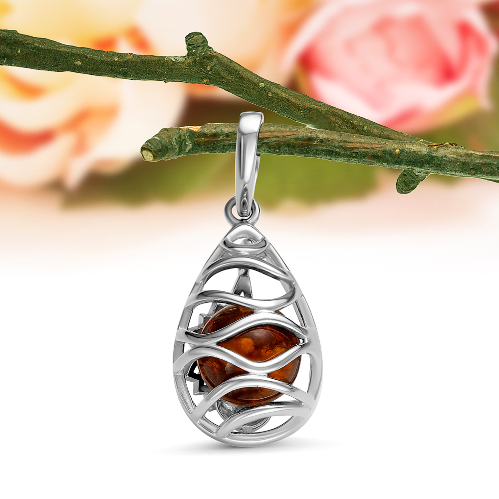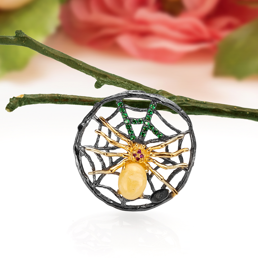 Кулон "Паук" из серебра 925 пробы, украшенный природным янтарем