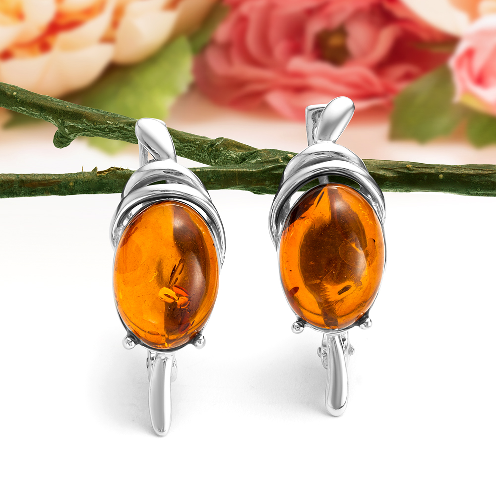 Серьги с королевским янтарем