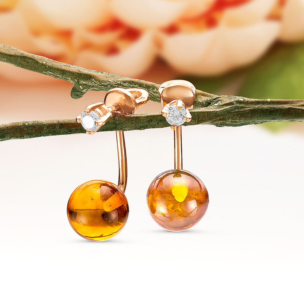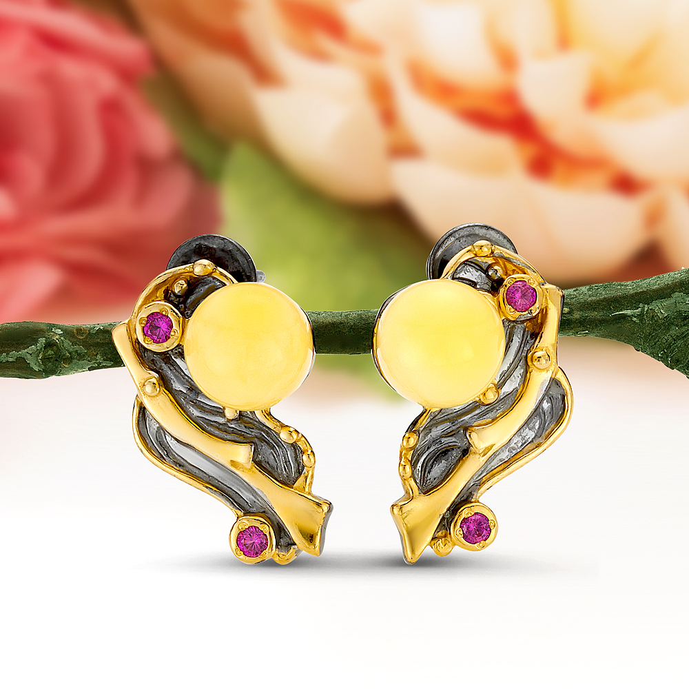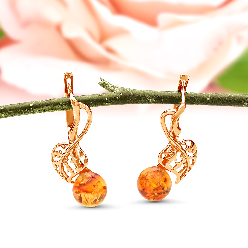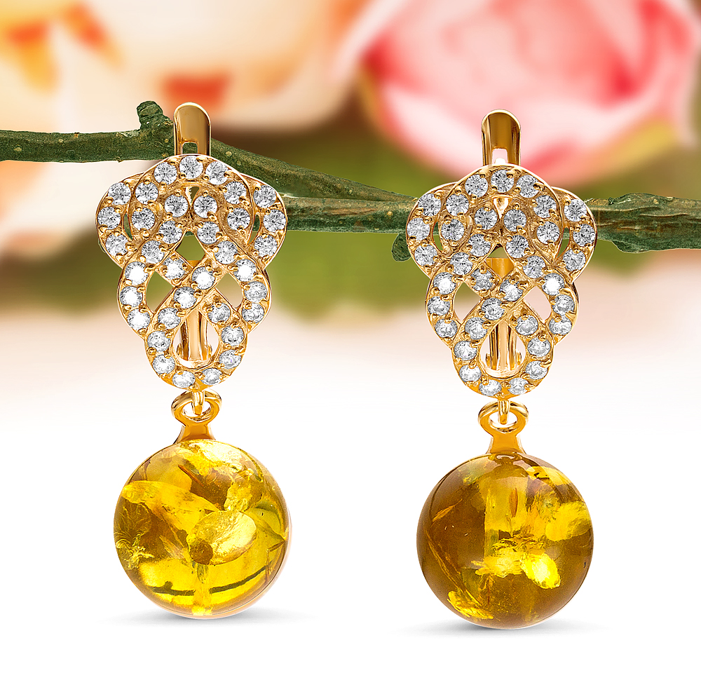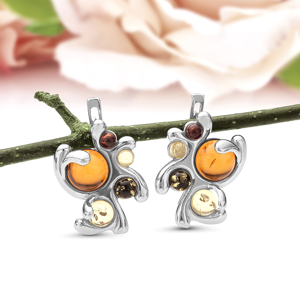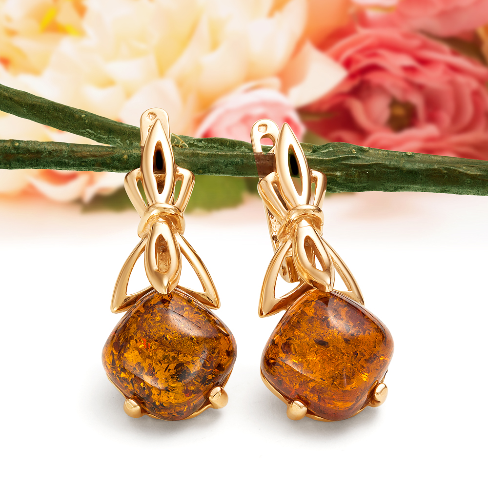 Серьги из серебра 925 пробы, украшенные золотистым янтарем