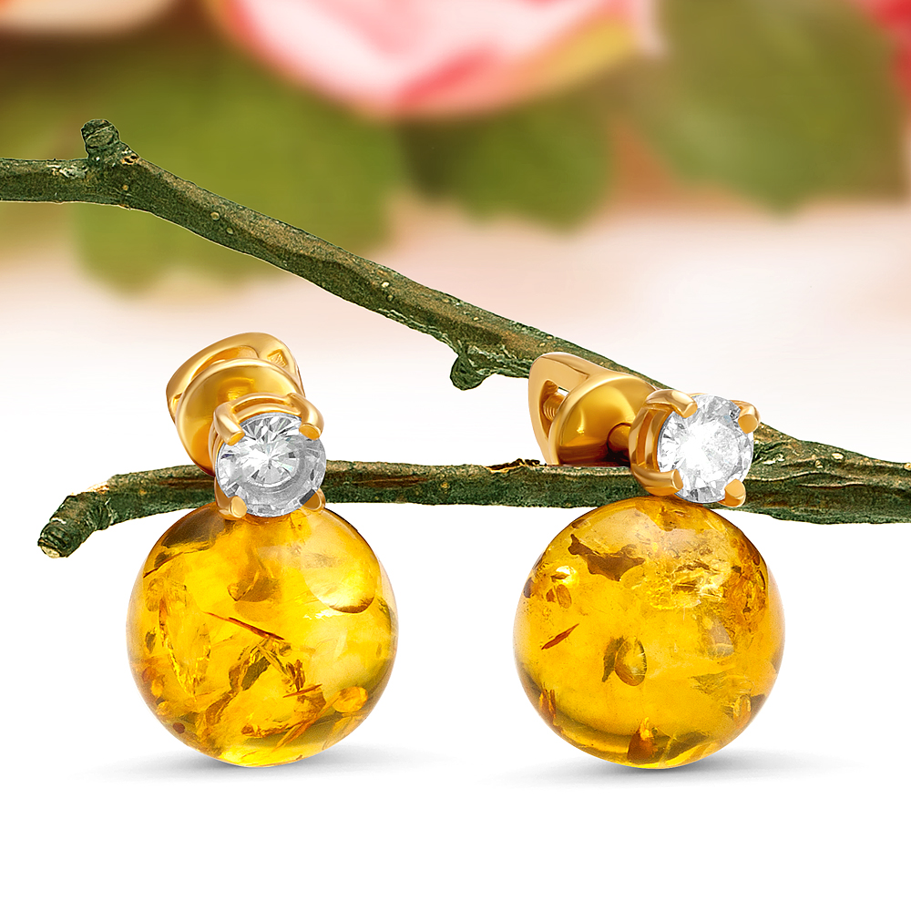 Пусеты из серебра 925 пробы, украшенные золотистым янтарем