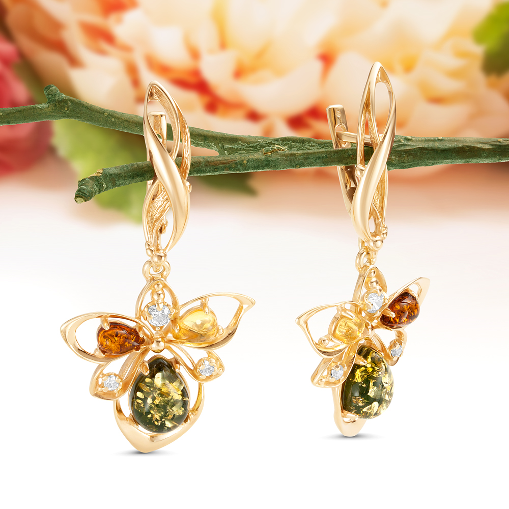 Золотые украшения с янтарем