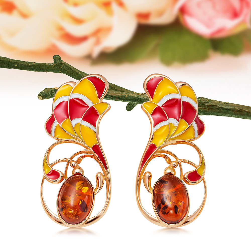 • Серьги с королевским янтарем