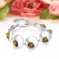 Браслет из натурального балтийского янтаря "микс" в серебре, артикул 11894