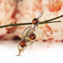 Брошь "Сердце" из серебра 925 пробы с лимонным балтийским янтарем, артикул 12482