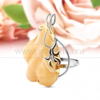 Кольцо из серебра 925 пробы с коньячным природным янтарем, артикул 11000