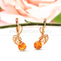 Серьги "Бабочки" из серебра, украшенные природным янтарем, артикул 11828