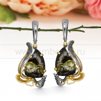 Серьги из серебра 925 пробы с золотистым природным балтийским янтарем, артикул 12616
