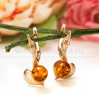 Серьги из серебра 925 пробы, украшенные золотистым янтарем, артикул 11252