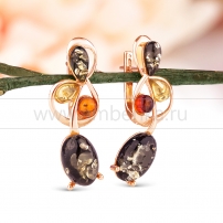 Серьги из серебра 925 пробы, украшенные природным янтарем "микс", артикул 11634