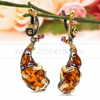 Серьги украшены уникальным цельным балтийским янтарем. При производстве серег мы использовали серебро 925 пробы.
